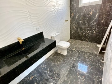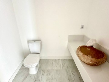 Balcões dos banheiros com tampo e cuba em granito/louça