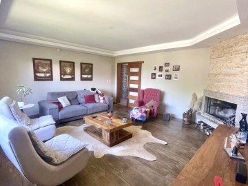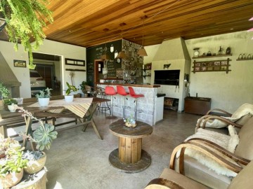 Pavimento Térreo: escritório, lavabo, sala com lareira e split, adega, cozinha integrada com sala de jantar com piso aquecido, lavanderia, garagem 2 carros e estacionamento p mais 2, espaço gourmet com churrasqueira, lareira e banheiro, depósito, piscina aquecida, pergolado e mto pátio com árvores frutíferas é muito verde !!