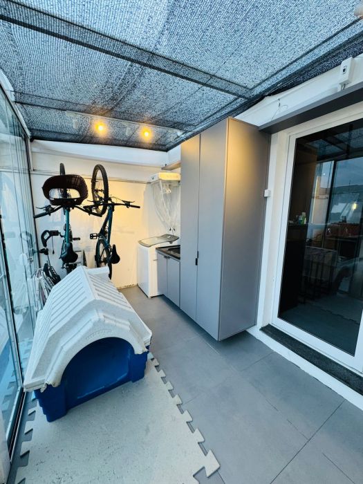 * Churrasqueira e lavanderia coberta e com fechamento em vidro e telas;