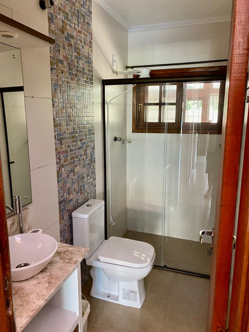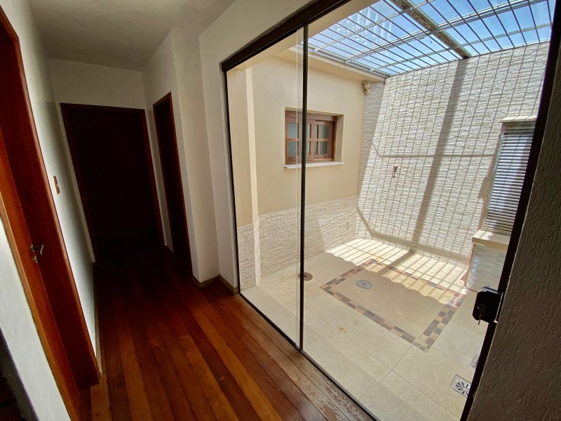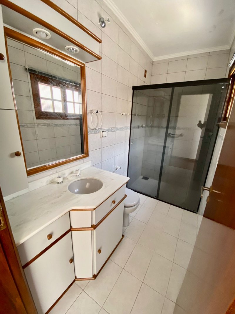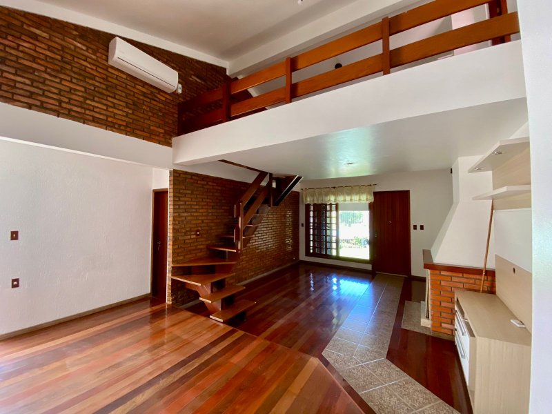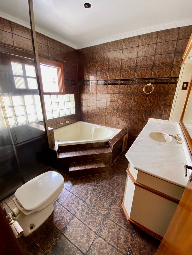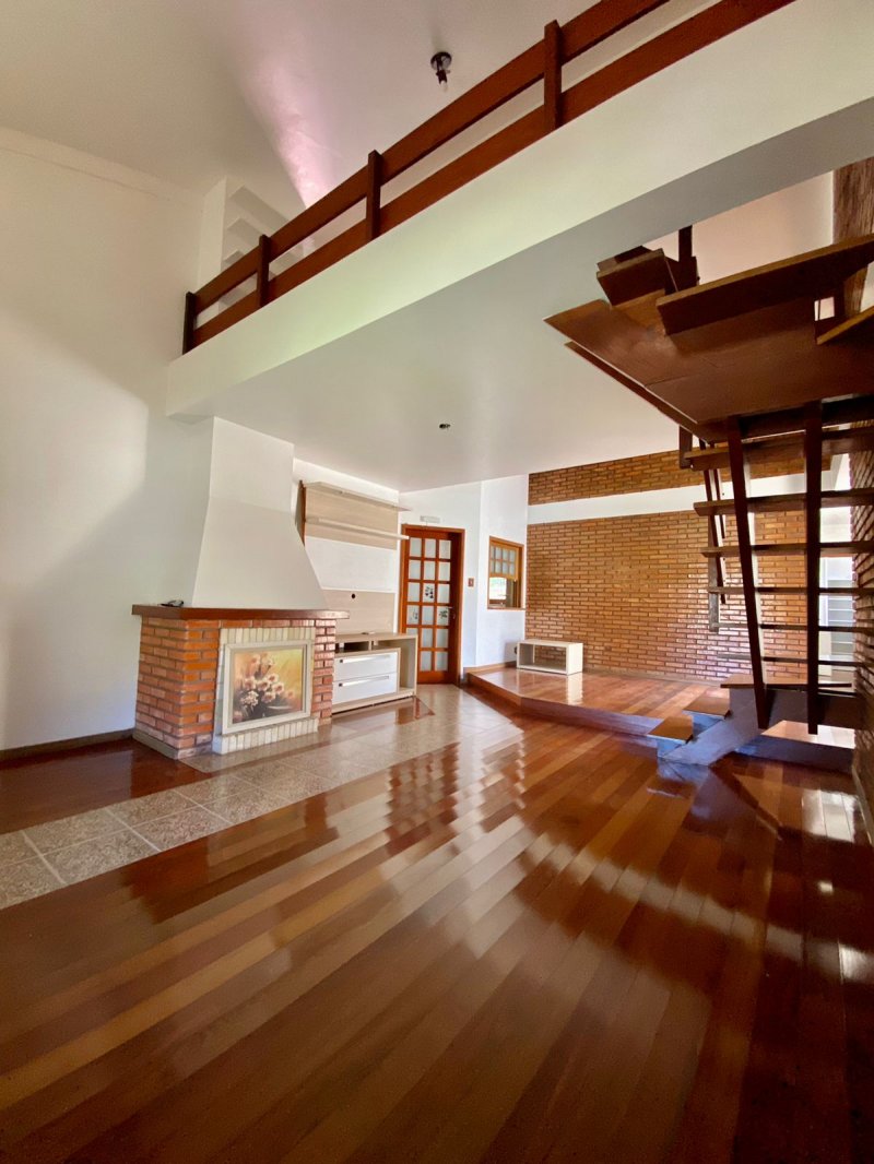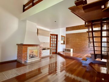 284 m2 construídos + área coberta para 4 automóveis 3 dormitórios sendo 1 deles suíte com banheira de hidromassagem Espaço Gourmet com churrasqueira Lareira Piscina Mezanino para fazer um escritório ou o 4º dormitório
